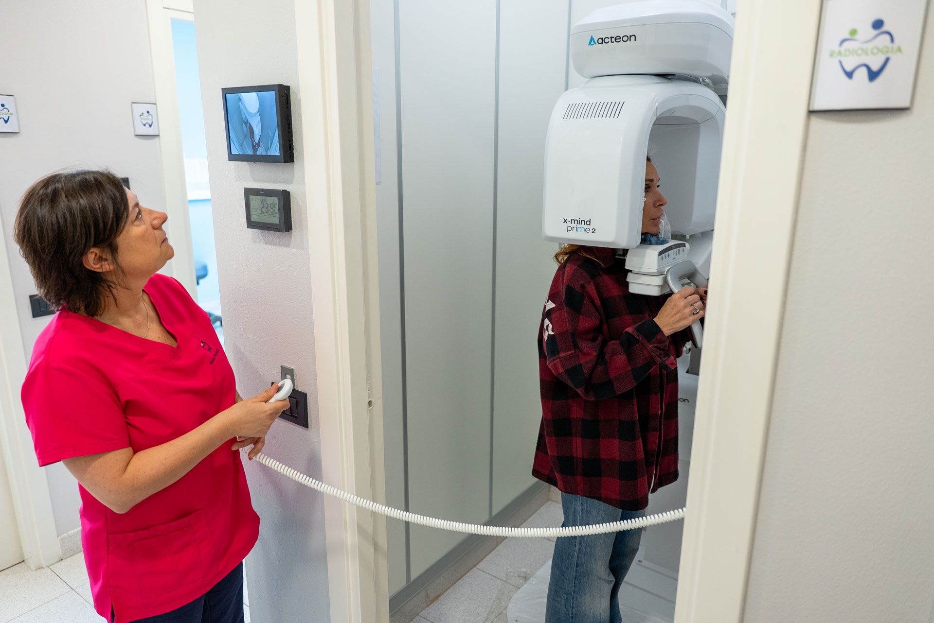 La radiologia nel nostro studio è affidata a sistemi digitali per ridurre al minimo le esposizioni radiogene. Nella tutela dei nostri pazienti poniamo sempre scrupolosa attenzione nell’utilizzo delle protezioni per gli organi più radiosensibili, come ad esempio il collare tiroideo.